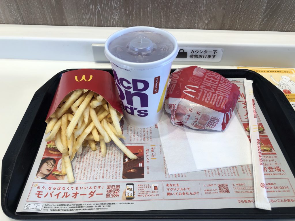 「ダブルチーズバーガー」のセットを注文し、ドリンクは「ファンタグレープ」にした。