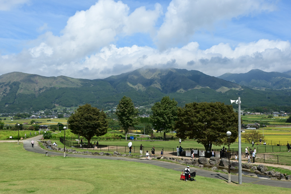 料理を受け取ったあと、テラス席へ移動すると、そこには阿蘇の大自然が広がっています。