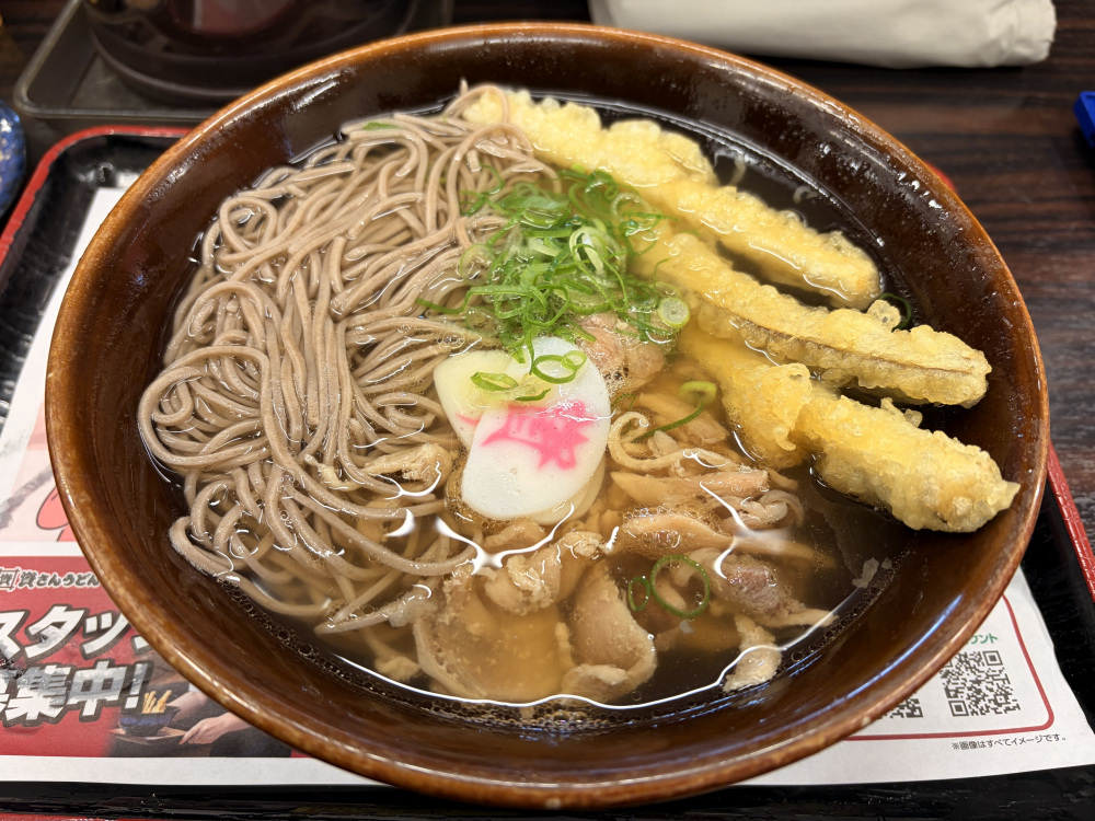そば自体は、いわゆるチェーン店のそばという印象で、手打ちそばのような風味や食感の強さはありませんが、喉越しよく食べやすく、出汁との絡みも良好です。