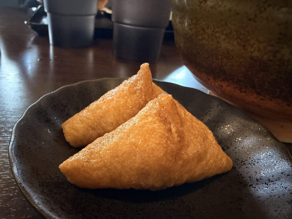 セットに付いてくる「いなり寿司」は、お揚げの味がしっかり染み込んでおり、出汁との相性も抜群。