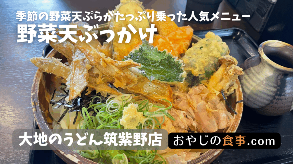 個人的には「野菜天ぶっかけ」「具だくさんうどん」「大地セット(いなり付)」がおススメです。