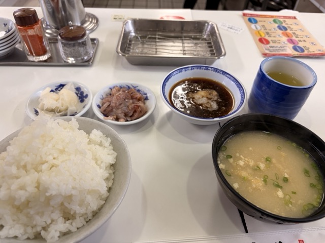 席に着くと、まずご飯・味噌汁・イカの塩辛が運ばれてきます。