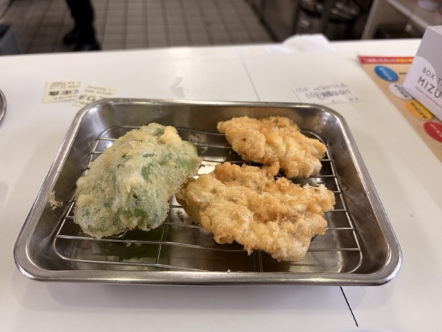 揚げたての天ぷらは、衣のサクサク感と油切れの良さが印象的でした。