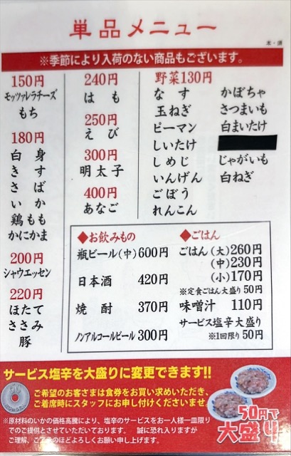 単品メニューも150円から400円程度と手頃な価格設定です。