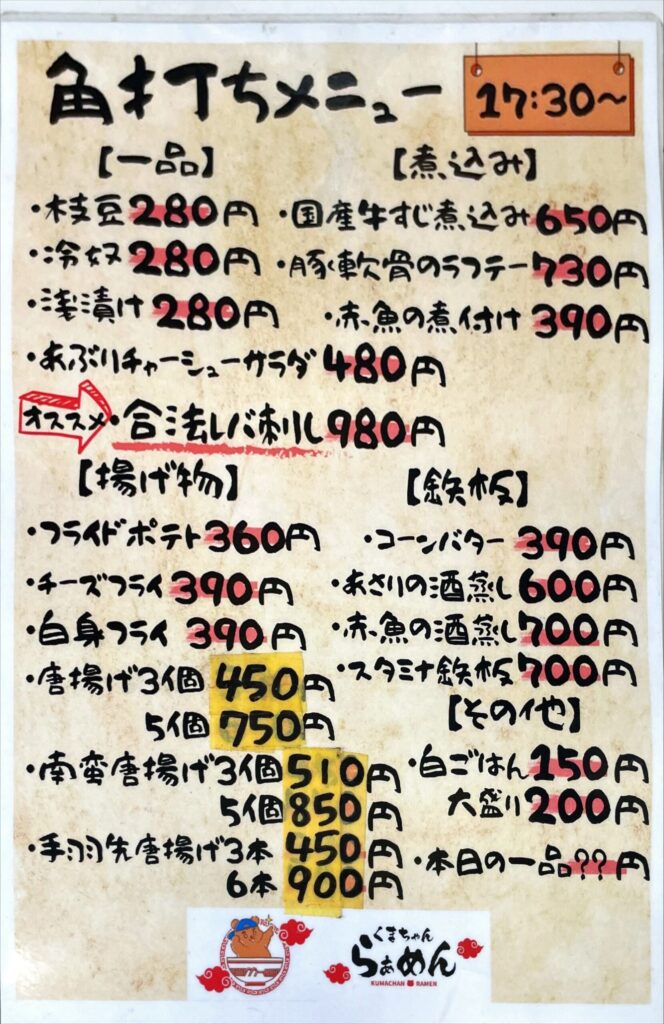 くまちゃんらぁめんの価格とコストパフォーマンス