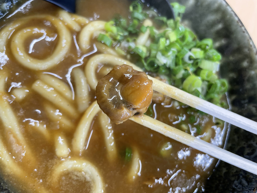 さらりとしたルゥと帆立の旨味、麺の弾力の三位一体で、カレー×うどんの良さを素直に楽しめます。